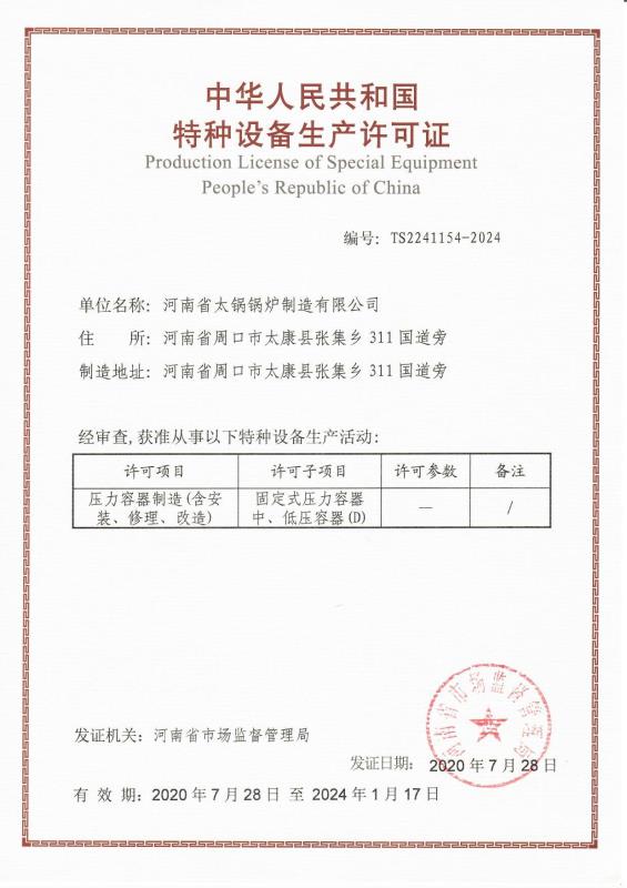 河南省太鍋鍋爐制造有限公司(原河南省太康鍋爐廠始建于1976年)始建于70年代初,經(jīng)40多年的艱辛探索,靠科技興業(yè),走科學管理之路,現(xiàn)已發(fā)展成為承接制造、安裝、設計大、中型供熱系統(tǒng),生產(chǎn):SZS燃油燃氣蒸汽鍋爐、燃煤蒸汽鍋爐、燃油鍋爐、燃氣鍋爐、電加熱鍋爐、生物質(zhì)鍋爐、茶水鍋爐、有機熱載體鍋爐、熱風鍋爐,蒸壓釜、燃油蒸汽鍋爐、燃氣蒸汽鍋爐、燃油熱水鍋爐、燃氣熱水鍋爐并承擔安裝120噸熱水鍋爐、蒸汽鍋爐,生物質(zhì)鍋爐,加工制造一、二類蒸壓釜、壓力容器,化工機械的省一級**企業(yè)。